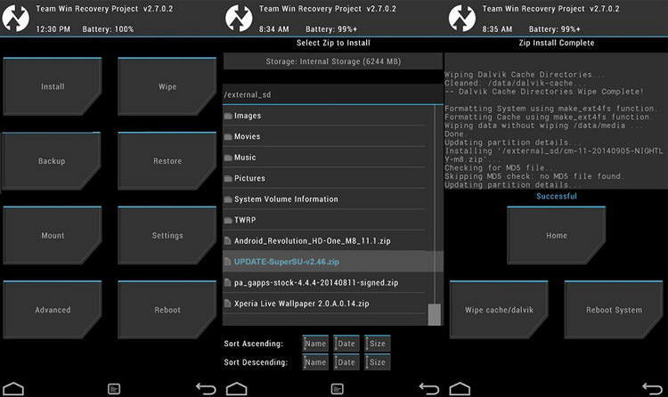 حال برای روت کردن گوشی کافیست تا فایل مخصوص ChainFire برای این امر را که تحت عنوان SuperSu.zip منتشر شده است دانلود و توسط این کاستوم ریکاوری نصب کنید. این فایل که برای تمام برندها یکسان است و دارای نسخههای مختلف نیست را از این لینک دانلود کنید و به حافظهی گوشی منتقل کنید. گوشی را خاموش کرده و به حالت ریکاوری ببرید. بعد از اجرای TWRP با انتخاب گزینه ی Install به فایلمنیجر گوشی دسترسی خواهید داشت که باید از این بخش فایل SuperSu.zip را انتخاب کنید تا شروع به نصب کند. بعد از اینکار به بخش Reboot در محیط ریکاوری رفته و گوشی را Reboot System کنید (اگر هنگام ریبوت پیامی در رابطه با Root Lost مشاهده کردید No را انتخاب کنید). گوشی شما روت شده است و میتوانید اپلیکیشن RootChecker را از این لینک دانلود و نصب کنید و بعد از باز کردن آن و کلیک روی دکمهی Verify، از روت بودن گوشی خود مطمئن شوید.