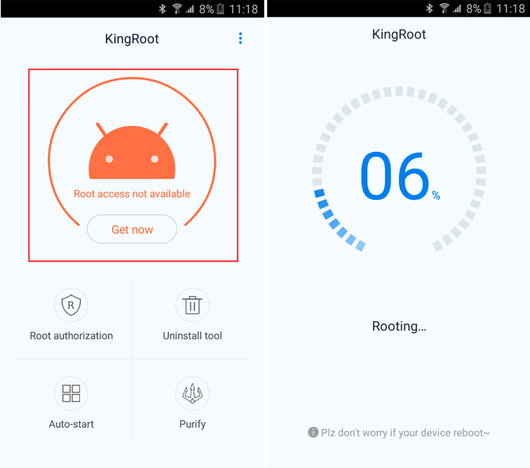 KINGROOT یکی از بهترین گزینههای موجود برای روت کردن گوشی با یک لمس است. این برنامه که در دو نسخهی اندرویدی و ویندوزی منتشر شده است قادر است تا گوشی شما را هم از طریق رایانه و هم از داخل گوشی موبایل روت کند. نسخههای اندرویدی که این برنامه قادر به روت کردن موفق آنها خواهد بود عبارتند از اندروید ۲.۲ / ۲.۳ / ۴ / ۴.۳ / ۴.۴ / ۵ و ۵.۱ که طیف بسیار وسیعی از گوشیهای موبایل را شامل میشود. اپلیکیشنKINGROOT تنها بر روی نسخهی ۴ یا بالاتر اندروید قابل نصب و اجرا خواهد بود از همین رو اگر قصد روت کردن گوشیهایی با اندروید ۲.۲ یا ۲.۳ را دارید به ناچار باید از نسخهی کامپیوتری این برنامه استفاده کنید. در غیر این صورت میتوانید با نصب این برنامه در گوشی خود و برقرار کردن ارتباط اینترنتی گوشی خود را با یک لمس روت کنید.