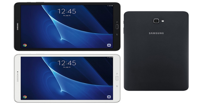 در عکس سه تبلت دیده میشود و جای دکمه بازگشت آنها کمی عجیب است. دکمه بازگشت معمولاً همتراز با دکمه مولتی تسکینگ قرار میگیرد اما در این تبلت، این دکمه بسیار نزدیک به دکمه فیزیکی هوم قرار گرفته است. به نظر میرسد که این اتفاق به دلیل مشکلاتی در طراحی عکس باشد و بعید است که سامسونگ دکمه بازگشت را این گونه طراحی کند. ضمناً در عکسهای منتشر شده توسط TENAA دکمهها در جای درست و استاندارد خود قرار گرفتهاند. به جز دکمه بازگشت، این عکس دقیقاً شبیه عکس منتشر شده توسط TENAA است اما در اینجا دو رنگ از این دستگاه را مشاهده میکنیم.