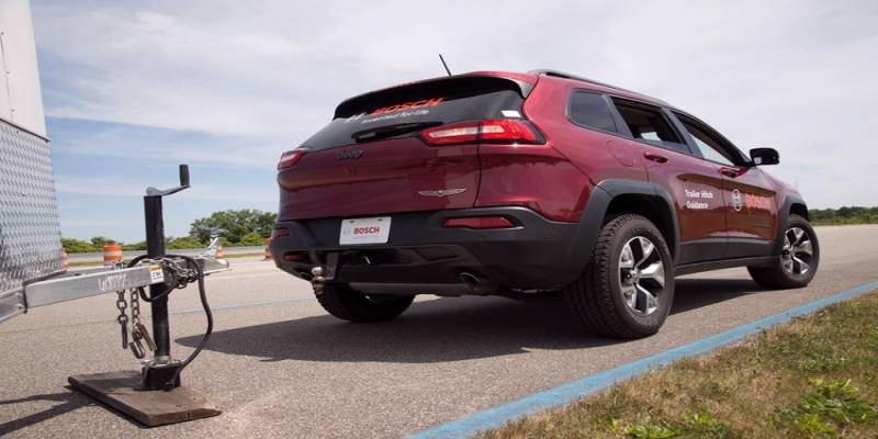 در حال حاضر سیستمهایی هستند که از طریق اپلیکیشن مخصوص روی تلفن همراه یا تبلت یا توسط یک کلید شما را راهنمایی میکنند تا تریلر را به خودروی خود متصل کنید؛ اما ایراد همگی آنها این است که باید تمام عملیات را بصورت دستی انجام دهید. با سیستمی که شرکت بوش ساخته است شما میتوانید خودرو را با فاصلهی حدود چهار متر از تریلر و با خطای هم راستایی حدود ۱۵ درجه نسبت به تریلر قرار دهید، سپس کافی است تا قلاب اتصال تریلر را روی صفحه لمس کنید. در مرحلهی بعدی تنها کاری که باید انجام دهید قرار دادن خودرو در دندهی عقب و استفاده از پدالهای گاز و ترمز خواهد بود؛ خودروی شما بصورت خودکار فرمانگیری کرده و به شکل بسیار زیبایی با تریلر هم راستا خواهد شد. در فاصلهی حدود ۶۰ سانتی متری از تریلر دوربین دید عقب خودرو تصویری نزدیک از قلاب و محلی که خودرو باید متوقف شود را به شما نشان میدهد و شما با تعیین محل توقف خودرو می توانید کاری کنید که قلاب اتصال دقیقا روی هوک تریلر خودروی شما قرار گیرد. بوش هنوز از چشم انداز و آیندهی این سامانه صحبتی نکرده است اما این سیستم را به سادگی میتوان روی هر خودرویی که مجهز به سیستم فرمان الکترونیکی و یک دوربین دید عقب با کیفیت باشد نصب کرد.