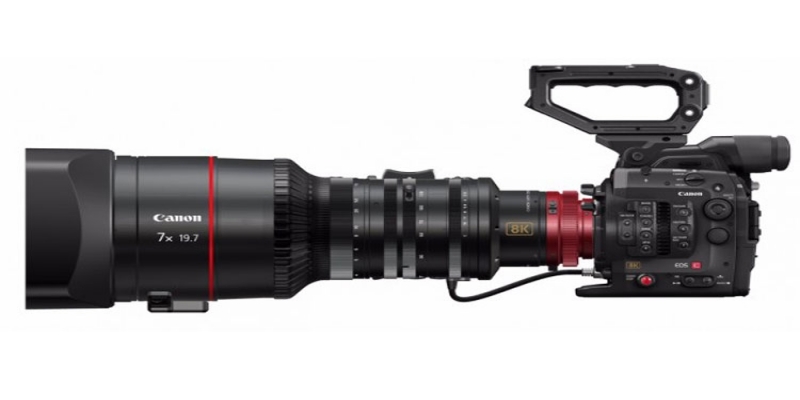 کانن در کنار امکان بهرهگیری از لنزهای خود، در کنار این دوربین لنز 8K خود با هفت برابر بزرگنمایی را معرفی خواهد کرد. این لنز عظیمالجثه رنج ۱۹.۷ تا ۱۳۸ میلیمتری را در دیافراگم ثابت f/2.8 در اختیار کاربر قرار میدهد.